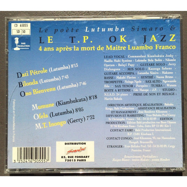 Diffusion et marketing: Yves Bidiaka Prf Cergy St Christophe, France - Tél: 34.25.02.09 Édition et production: Édition Babi Production rue Busu Djanoa N°94 Kinshasa Kasa - Yubu, zaïre BP 12 481 Kin 1 Contact Zaïre: Babi Production International BP 12 481 Kin 1 Contact Congo: Jose Bondowe Kikounou, 93 rue Massoukou, Mongali Brazzaville Etranger: Yves Bidiaka Prf Cergy St Christophe, France - Tél: 34.25.02.09 Remerciements particuliers: Maiçon Blance - tonton Makato - tonton Hondere