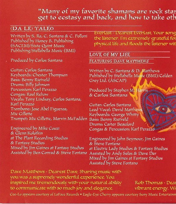 CD Mastered at Sterling Sound except "Smooth", mastered at A&M Mastering Studios