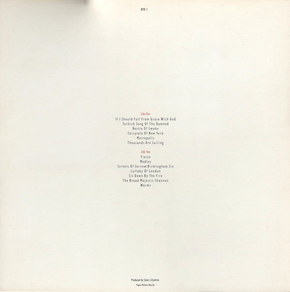 Released with a printed inner sleeve of lyrics on one side, credits and a band photograph on the other. Recorded and mixed at RAK Studios. Strings recorded at The Town House. Eli Thompson and Brian Clarke appear courtsey of [l651426. [Catalogue number: NYR 1 on the rear sleeve, spine and inner sleeve. NYR1 on the labels. [Publishers: All songs Stiff Music Ltd. except A6 Unchained Melodies, B2 & B3 Stiff Music Ltd./Unchained Melodies. [Labels: A side: ℗ 1988 Stiff Records Ltd. *℗ 1987 Stiff Records Ltd. ["Fairytale Of New York" © 1988 Stiff Records Ltd. B side: ℗ 1988 Stiff Records Ltd. © 1988 Stiff Records Ltd. [Inner sleeve: © 1988 Stiff Music Ltd. © Unchained Melodies.
