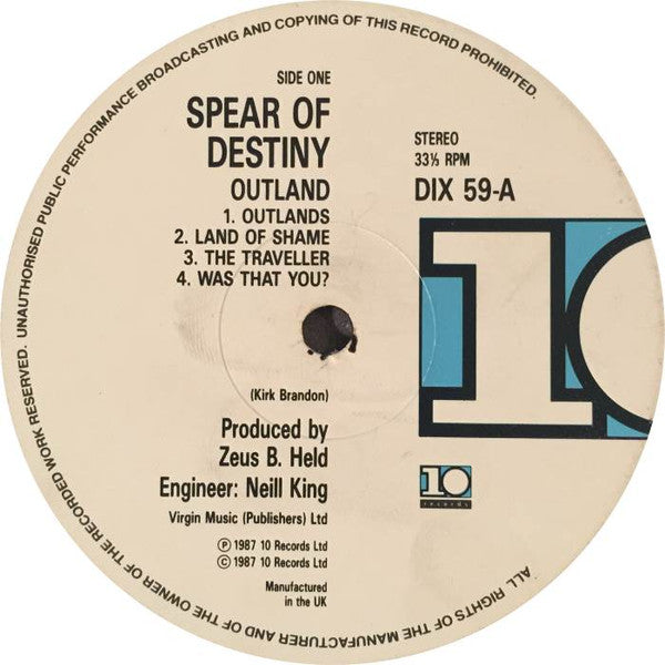 Spear Of Destiny - Outland (LP, Album) (Near Mint (NM or M-))