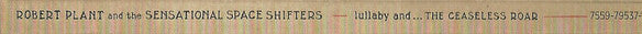 At front is written: ROBERT PLANT lullaby and... THE CEASELESS ROAR At the side is written: ROBERT PLANT and the SENSATIONAL SPACE SHIFTERS - lullaby and... THE CEASELESS ROAR All songs published by Sons of Einion Ltd, administered by WB Music Corp (ASCAP), except "Poor Howard" "Rainbow" incorporates "Love Is Enough", a poem by William Morris. "Poor Howard" is derived from "Po' Howard" (Lead Belly/A. Lomax/J. Lomax, Sr.), published by Global Jukebix Publishing (BMI)/Folkways Music Publishers All tracks recorded by Tim Oliver at Helium Studios, Wiltshire and Rela World Studios, Bath Except "Rainbow", recorded by Tim Holmes at Contino Rooms, London Piano on "A Stolen Kiss" recorded at St. George's Chapel, Bristol Tracks 2, 6, 9 mixed by Tim Oliver at Top Cat Studio, Wiltshire Tracks 1, 3 - 5, 7, 8, 10, 11 mixed by Tchad Blake at Full Mongret, Wales Mastered by Bob Ludwig at Gateway Mastering, Portland, ME Nonesuch Records Inc., a Warner Music Group Company. ℗ & © 2014 Trolcharm Ltd. under license to Nonesuch Records Inc. for the United States and WEA International Inc. for the world outside of United States. Manifactured in the E.U. Packaged in a double gatefold card sleeve with a catalogue number different on the sleeve and booklet to that on the CD matrix.