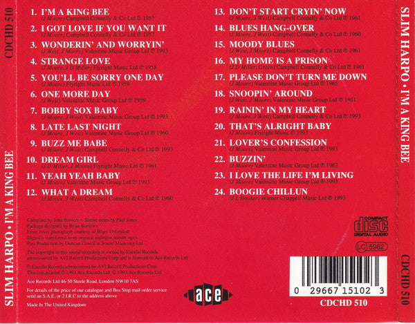 Slim Harpo - I'm A King Bee (The Early Swamp Blues Classics) (CD, Comp, RP) (Near Mint (NM or M-))