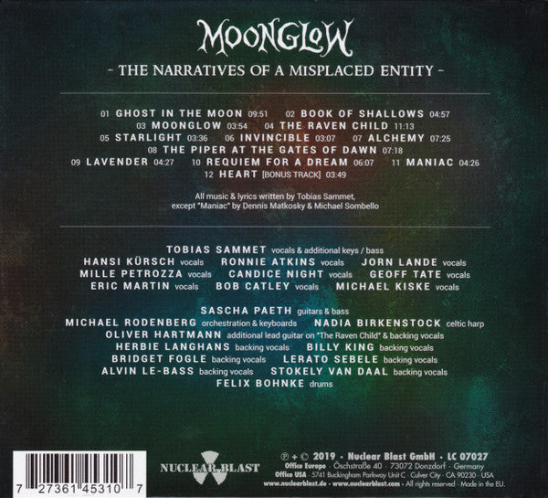 Subtitled "The Narratives of a Misplaced Entity" on the back cover. Catalog Numbers: - NB 4531-0 on CD - 27361 45310 on spine Written & recorded in miscellaneous haunted places, hotels, forests & parks in Germany & England. "Maniac" is a [a94940 cover. Published by 1983 WB Music Corp. Intersong-USA Inc. and Famous Music Corp. / Neue Welt Musikverlag GmbH. "Heart" is a bonus track. Ⓟ + © 2019 Nuclear Blast GmbH Orders from Recordstore.co.uk include a signed insert.