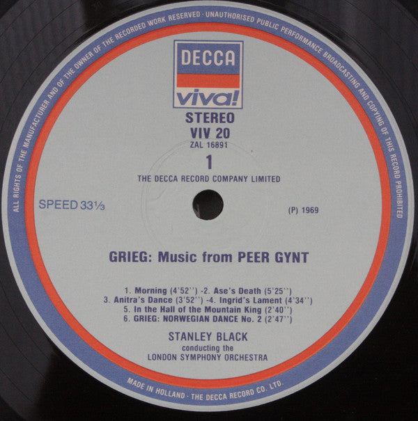 Bedřich Smetana, Edvard Grieg - Peter Ilyich Tchaikovsky*, London Festival Orchestra, London Symphony Orchestra, Stanley Black - Peer Gynt, Capriccio Italien Moldau (LP) (Very Good Plus (VG+))
