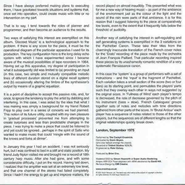 Brian Eno - Discreet Music (CD, Album, RE, RM) (Near Mint (NM or M-))