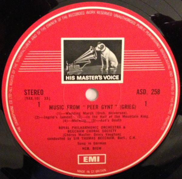 Grieg*, Sir Thomas Beecham, Bart. CH*, Royal Philharmonic Orchestra, Beecham Choral Society* With Ilse Hollweg - Music For Peer Gynt (LP, Album, RE, ER8) (Very Good Plus (VG+))