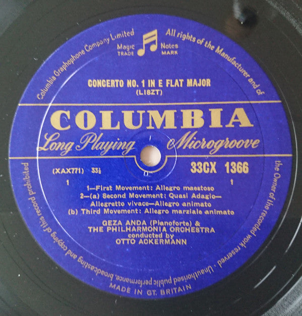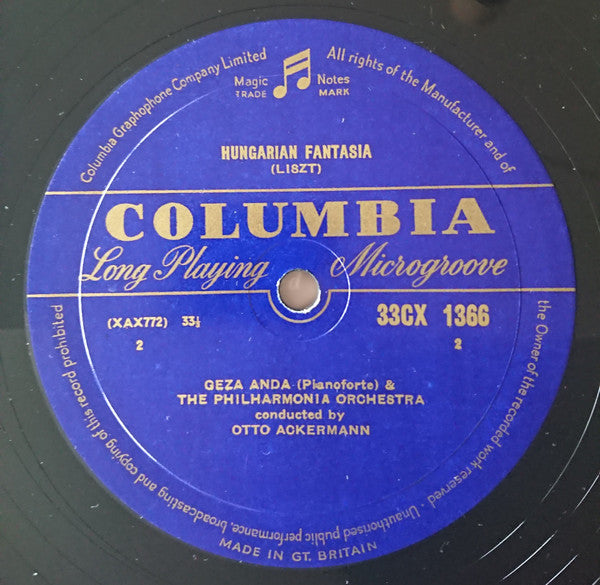 Liszt* - Geza Anda* And the Philharmonia Orchestra Conducted By Otto Ackermann - Piano Concerto No. 1 In E Flat / Hungarian Fantasia (LP, Mono) (Very Good Plus (VG+))