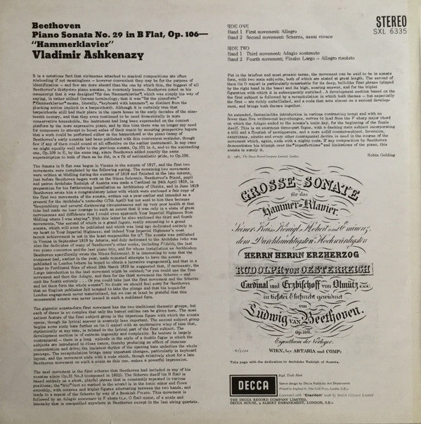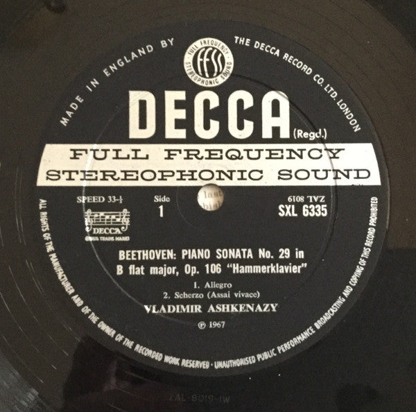 Ludwig Van Beethoven, Vladimir Ashkenazy - Hammerklavier Sonata In B Flat Op. 106 (LP, ED2) (Very Good Plus (VG+))