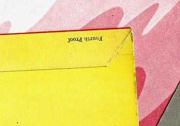 1st UK pressing, (FOURTH PROOF) A Garrod & Lofthouse Patents pending laminated gatefold cover (flipback glue-tabs on inner spread); A red half-tone print on white 'psychedelic' inner sleeve; A 'cut-outs' card insert (full-color, single-sided. Printed signatures of Blake/Haworth at foot); A black and yellow logo label with silver text: "The Gramophone Co." in the radial text and "Sold in the U.K. Subject To Resale Price Conditions, See Price Lists" across label at center, with "Made in Gt. Britain" at foot.