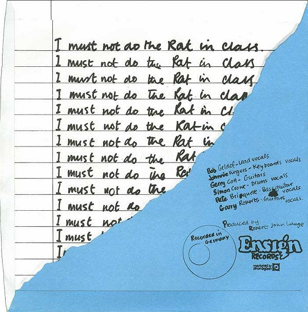 [Label notes: Ensign Records Ltd Sewer Fire Hits Ltd., ℗ 1977 Made in England [A-side: Alternate version from the album 'Boomtown Rats' ENVY 1 [Sleeve note: Recorded In Germany [Submission note: Lime green injection moulded labels. On the B-Side run-out the cat.no. has been stamped as 'ENVY 9' but the 'V' has been scratched-out. Green and red versions of the picture sleeve also exist.