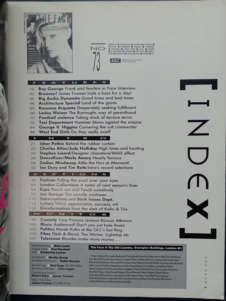 The Face magazine No. 73 May 1986, Big Audio Dynamite, Lesley Weiner, Boy George, Rosanna Arquette