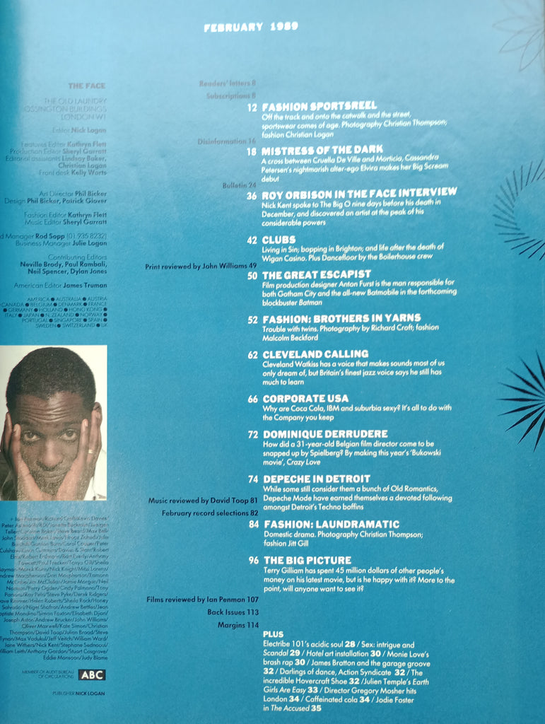 The Face magazine Vol.2 #5 February 1989 Roy Orbison the last interview, Cleveland Watkiss the voice of British jazz, Depeche Mode