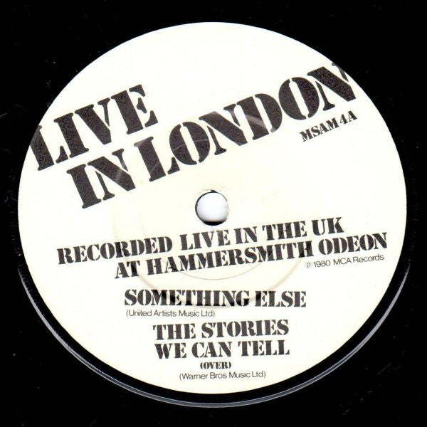 Disc 1: ℗ 1979 Backstreet Records A division of MCA Records Inc. MCA Records are the exclusive licensees for the U.K. Taken from the album "Damn The Torpedoes" MCF 3044 Virgin Music (Publishers) Ltd. Disc 2: ℗ 1980 MCA Records Limited edition free single recorded 'Live in London' included with this record Recorded live in the UK at Hammersmith Odeon Track C: United Artists Music Ltd Track D: Warner Bros Music Ltd Title of track C on cover: Stories We Can Tell, on label: The Stories We Can Tell Bobby Valentino is credited on back cover only.