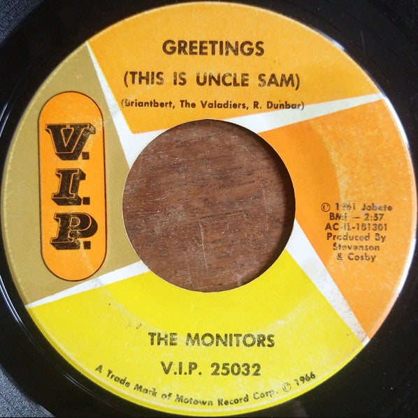 The Monitors - Greetings (This Is Uncle Sam) / Number One In Your Heart (7") (Very Good Plus (VG+))