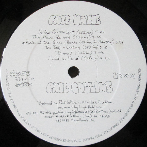 Phil Collins : Face Value (LP, Album, Gat)