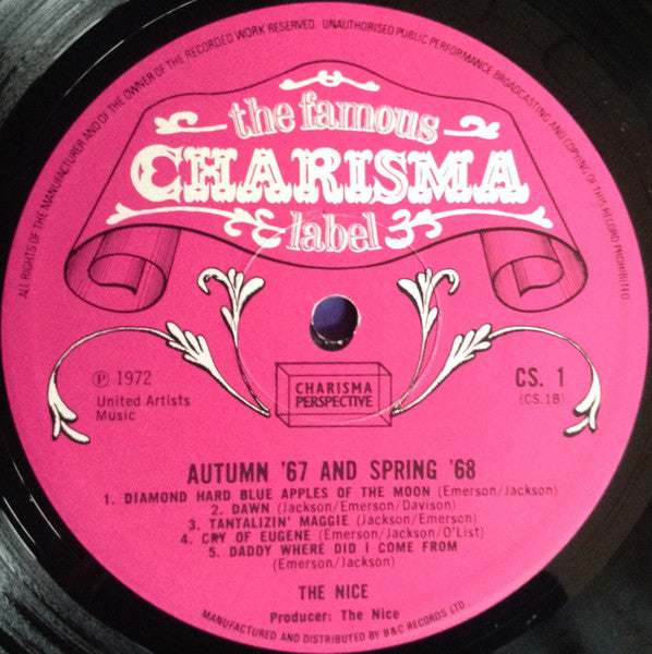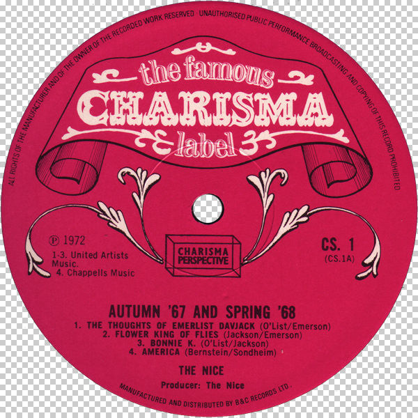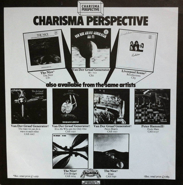 This is a compilation of material recorded between Autumn 1967 and Spring 1968 at Olympic Studios in Barnes, London featuring alternate versions of previously released material. Released as the very first album of the Charisma "Perspective" Series. Album came with a "Perspective" advertising insert. First press had the Charisma pink scroll label. ℗ 1972 Published By: United Artists Music A1 to A3, B1 to B5 Chappell Music A4
