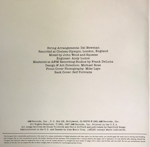Originally released in 1980. 1992 repress of [r533309 and [r11941206 with different barcode. All songs published by Deptford Songs Administered in the U.S. and Canada by Almo Music Corp. (ASCAP) Recorded at Chelsea Olympic, London, England Mastered at A&M Recording Studios Photos: Back Cover: Self Portraits