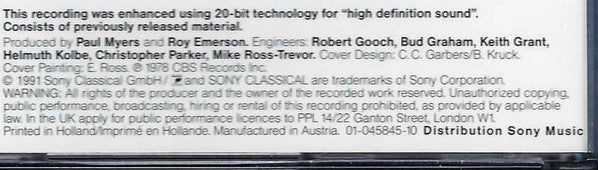 (P) 1978 CBS Records Inc. (C) 1991 Sony Classical GmbH. Printed in Holland. Manufactured in Austria. Distribution Sony Music. Cat# on spine of the booklet: S3K 45845. Cat# on back cover of the booklet: 01-045845-10. Consists of previously released material. This recording was mastered using 20-bit technology for "high definition sound" Track 1-1 recorded in London, February 1969, Banking Town Hall. Track 1-2 recorded in London, June 6, 1969, Olympic Studios. Tracks 1-3 to 1-7 recorded in London, April 20, 1970, EMI Studios. Tracks 1-8 to 1-12 recorded in London, April 21, 1970, EMI Studios. Tracks 1-13 to 1-17 recorded in New York, February 27, 1970. Tracks 1-18 to 1-23 recorded in London, February 1969, Banking Town Hall. Tracks 1-24 to 1-27 recorded in New York, May 7, 1971. Tracks 1-28 & 1-29 recorded in London, November 3, 1967, Olympic Studios. Tracks 1-30 to 1-35 recorded in New York, February 27, 1970. Tracks 1-36 to 1-40 recorded in London, February 1969, Banking Town Hall. Tracks 1-41 to 1-43 recorded in Hollywood, March 29, 1972. Tracks 1-44 to 1-47 recorded in London, April 20, 1970, EMI Studios. Tracks 2-1 to 2-10 recorded in London, November 3, 1967, Olympic Studios. Tracks 2-11 to 2-26 recorded in London, January 7, 1969, Olympic Studios. Tracks 2-27 & 2-28 recorded in London, June 6, 1969, Olympic Studios. Tracks 2-29 & 2-30 recorded in New York, May 14, 20 & 21, 1971. Tracks 2-31 & 2-32 recorded in London, June 2, 1969, Banking Town Hall. Tracks 2-33 & 2-34 recorded in Cleveland, April 4, 1970. Tracks 2-35 to 2-37 recorded in London, September 5, 1970, EMI Studios. Tracks 2-38 to 2-40 recorded in London, June 7, 1969, Olympic Studios. Tracks 2-41 to 2-43 recorded in London, September 5, 1970, EMI Studios. Track 3-1 recorded in London, June 2-4, 1969, Banking Town Hall. Tracks 3-2 to 3-4 recorded in London, June 13, 1969, EMI Studios. Tracks 3-5 to 3-7 recorded in New York, February 27, 1970. Tracks 3-8 to 3-10 recorded in London, June 3, 1969, Banking Town Hall. Track 3-11 recorded in London, June 4, 1969, Banking Town Hall. Tracks 3-12 to 3-17 recorded in London, May 28, 1969, Walthamstow. Tracks 3-18 to 3-23 recorded in London, June 2, 1969, Banking Town Hall. Tracks 3-24 to 3-29 recorded live (mono) at Frankfurter Funkhaus, December 29, 1932. 162-page-booklet with lyrics & liner notes in English, German, French & Italian. Total playing time: - CD1: 74'18" - CD2: 75'20" - CD3: 76'05".