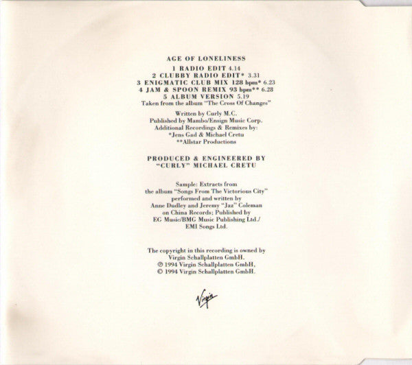 Enigma - Age Of Loneliness (CD, Maxi) (Very Good Plus (VG+))