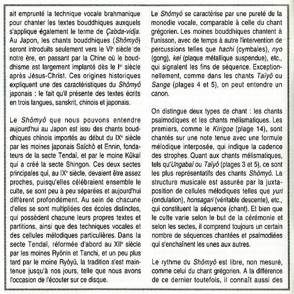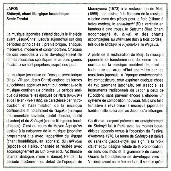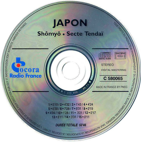 Secte Tendaï* - Japon: Shômyô Chant Liturgique Bouddhique (CD, Album, RE) (Very Good Plus (VG+))