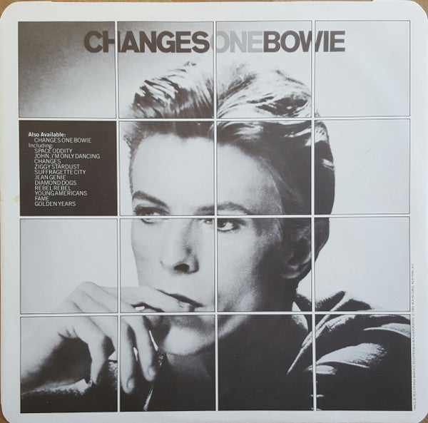 Silver on black RCA labels. Semi-sheen cover with die-cut printed advertising inner sleeve. Cat No. - BOW LP3 - on sleeve. BOWLP 3 - on labels. PL 14202 - on labels in brackets. Sleeve: TMK (S) Ⓡ Registered • Marca(s) Registrada(s) RCA Corporation © 1981 RCA Records, New York, N.Y. RCA Limited, Record Division 1 Bedford Avenue, London WC1 Labels: Publishing info - A1a, A2, A3, A4, B4 - Bowie / Chrysalis Music Ltd./ Mainman Ltd. A1b - Screen-Gems EMI Music Ltd. A5, B1, B2 - Bewlay Bros. Music / Fleur Music B3 - Carlin Music Corp B5 - Bewlay Bros. Music / Fleur Music / E.G. Music Ltd./ 100 MPH Music ℗ 1971 (A2), ℗ 1972 (A3), ℗ 1974 (A1, A4), ℗ 1980 (A5, B2), ℗ 1976 (B3), ℗ 1977 (B1), ℗ 1979 (B4, B5) RCA Records. Marketed by RCA Limited, England from master recordings or RCA Records. Inner: TMK (S) Ⓡ Registered / Marca(s) Registrada(s) RCA Corporation. © 1981, RCA Records, New York, N.Y. Note: There is also a similar version with a label variant - [r620216