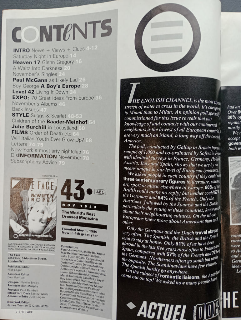 The Face magazine #43 November 1983 Boy George, Heaven 17, Madness, Level 42