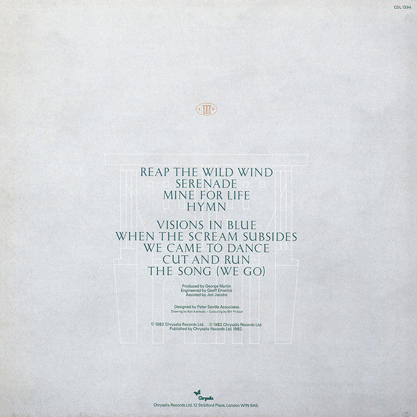 ℗ 1982 Chrysalis Records Ltd. (labels, back cover, inner sleeve) © 1982 Chrysalis Records Ltd. (labels, back cover, inner sleeve) Matte sleeve with gloss overprint over front cover illustration. Comes with heavy paper printed inner sleeve. On this UK version, the producer and engineer credits on the labels are in single line format (in the other UK version '[r=1583776'- the credits are in two separate lines). A third standard UK version with the same cat. no. as this release and also has the credits in a single line format is '[r=14743434' but this is listed as an undated, reissue and contains different matrix details. Matrix notes: The runouts have the matrix numbers both stamped and etched. 'PRINTED IN UK' (spine)
