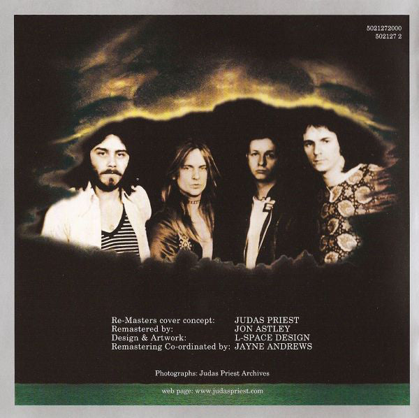 Album title, band logo on front in silver. Silver border on front and back cover of the booklet. The Judas Priest Remasters symbol on the back cover in silver