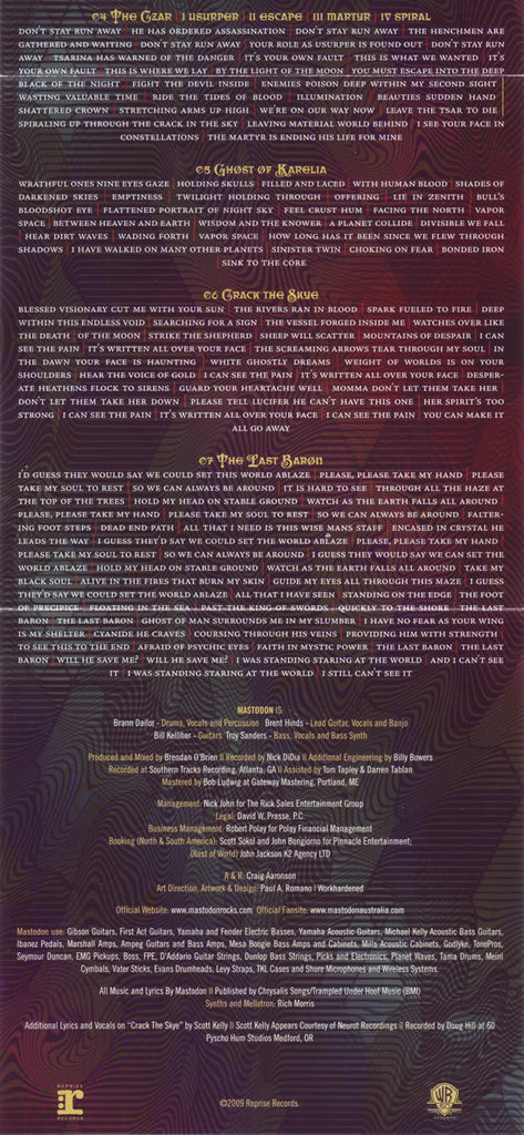 Recorded at Southern Tracks Recording, Atlanta, GA Mastered [... at Gateway Mastering, Portland, ME Management: [... for The Rick Sales Entertainment Group Booking (North & South America): [... for Pinnacle Entertainmet Published by Chrysalis Songs / Trampled Under Hoof Music (BMI) Scott Kelly Appears Courtesy of Neurot Recordings Recorded [... at 60 Psycho Hum Studios Medford, OR © ℗ 2009 Reprise Records for the U.S. and WEA International Inc. for the world outside the U.S. Manufactured in the E.U. Catalog numbers: '9362-49872-2' on spine, rear cover & booklet. '459132-2' on CD (near by the inner edge). '9362498722' on CD (near by the outer edge). Packaging: clear tray jewel case with 6 page foldout booklet.