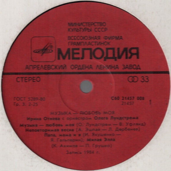 Ирина Отиева и Оркестр Олега Лундстрема* - Музыка - Любовь Моя (LP, Album) (Very Good Plus (VG+))