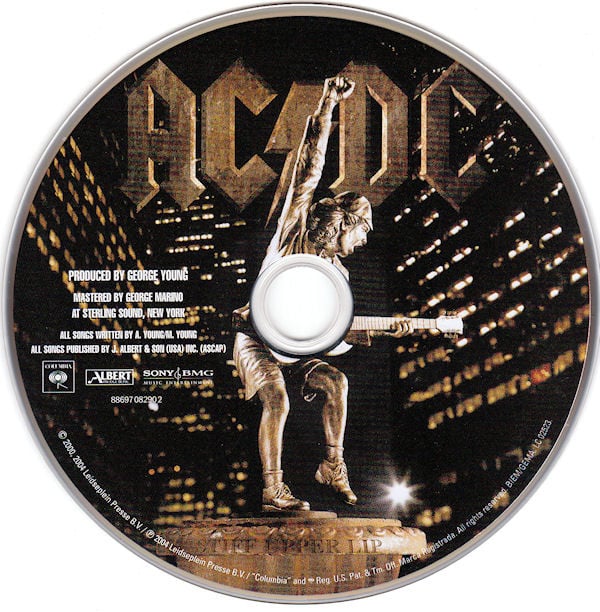 First release: February 28, 2000. This CD takes advantage of ConnecteD technology and will work as a key to unlock exclusive bonus music, videos, photos and more at www.acdcrocks.com. All songs published by J. Albert & Son (USA) Inc. (ASCAP) Mastered at Sterling Sound, New York. Recorded at The Warehouse Studio, Vancouver, B.C., Canada. Additional artifacts courtesy Albert Productions and Arnaud Durieux. © 2000, 2004 Leidseplein Presse B.V. / ℗ 2004 Leidseplein Presse B.V. Distributed by Sony BMG Music Entertainment. Made in the EU. Similar versions: * with Sony BMG Music Entertainment logo on back and on disc, glass mastered by [l268910: this one, * with Sony BMG Music Entertainment logo on back and Sony Music logo on disc, glass mastered by [l268910: [r=10392626, * with Sony Music logo on back and on disc, glass mastered by [l268910: [r=6513241, * with Sony Music logo on back and on disc, glass mastered by [l34825: [r=5559271, * with Sony Music logo on back and on disc, glass mastered by [l504648: [r=15134586.