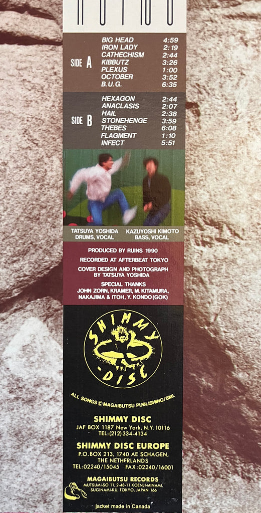 Included Company Inner Sleeve. (On the back cover:) Produced by Ruins 1990 Recorded at Afterbeat Tokyo Special Thanks John Zorn, [a239431, M. Kitamura, Nakajima & Itoh, Y. Kondo (Gok) All songs © Magaibutsu Publishing/BMI. jacket made in Canada
