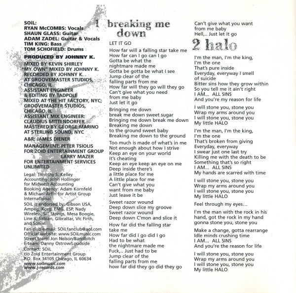 Dedicated to the memories of Gerald King and Victor Murgaski. Recorded at Groovemaster Studios, Chicago, IL. Mixed at The Hit Factory, NYC and Groovemaster Studios, Chicago, IL. Mastered at Sterling Sound, NYC. Published by Almo Music Corp. / Throttle Junkies Music (ASCAP). Rondor Music International, a Universal Music Company. ℗ & © 2001 J Records LLC. Distributed by the local BMG company. A unit of BMG Entertainment. Made in the EU.