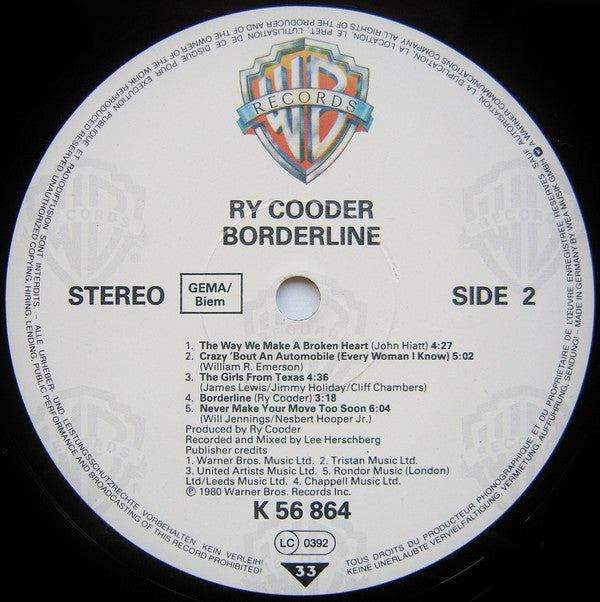 Ry Cooder - Borderline (LP, Album, RE) (Very Good Plus (VG+))